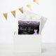 A beautiful light purple themed elegant watercolor dress gown on a black background with faux glitter at the top and bottom of the card.