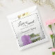 Estas belas bolsas de casamento ou de tratamento apresentam um simples, mas belo, design com um solteiro lilás, púrpura, corado, deitado do lado, refletindo na água. A legenda diz: "Amor é doce, por favor, dê uma volta! Há espaço para os nomes do casal e da data do casamento. É uma maneira maravilhosa de convidar seus convidados para comer doces na sua recepção de casamento.