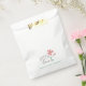 A charming favor bag design with a hand drawn floral motif, hand lettering and custom message.