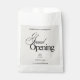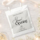 Esta bolsa de favor de abertura grandiosa bege simples e elegante é um design fácil de editar que permite adicionar o logotipo da sua empresa e o nome da empresa e site. Prepare-se para a celebração do seu lançamento escolhendo esta bolsa de tipologia de roteiro minimal com um sentimento clássico. A bolsa personalizada de agradecimento apresenta um esquema de cores limpo e sofisticado de texto preto contra um fundo bege claro.