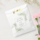 Apresentando delicadas folhas verdes de eucalipto, essas bolsas de favorecimento botânico podem ser personalizadas com sua mensagem especial e detalhes de celebração de casamento. Projetado por Thisnotme©