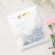 Uma paleta de cores de tendência em tons de cinza de aço a azul-para-brisas; quadros geométricos cintilantes e layouts elegantes de design, fornecem a base para esta maravilhosa suíte de casamento. Quer você esteja planejando um casamento de destino ou ficando perto de casa, este delicado conjunto de design de folha de palma faz uma escolha atraente. A bolsa de favores coordenada mostrada aqui em fundo branco, fornece uma modelo para adicionar facilmente uma mensagem 'obrigado você', suas iniciais, nomes e data de casamento. Procure ID956 para ver outras peças e opções de cor para este conjunto.