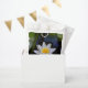 Lindo macro foto de uma flor branca de lótus em toda sua glória. Uma bolsa de presente elegante.