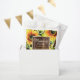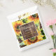 Madeira russa com girassóis amarelos do estilo country, bolsa de favores para mulheres. O texto diz, "CONVIDADO COM O NOME DE HONRA Aniversário. Obrigado por celebrar conosco." Preencham-se com guloseimas e favoritos para festas especiais para os seus convidados.
