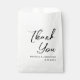 Este elegante obrigado de casamento que você favorece a bolsa mostra um roteiro de caligrafia com letras negras com as palavras "Obrigado" e seus nomes e data de casamento para personalizar em um simples fundo branco. Desenhada por Susan Coffey.