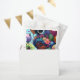 Menina de cor de anime bonita com flores no cabelo e balões de aniversário favoritos de festa de aniversário.