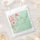 Este obrigado floral que vocês casaram, a favor das bolsas, apresenta um padrão design de pêssego e flores brancas com elementos verdes e rosa de ouro sobre um fundo verde minúsculo. Estas seriam perfeitas para quem procura um casamento romântico e clássico ou, em alternativa, um janto de ensaio, festa de noivado ou outra ocasião especial. Personalize as bolsas favoráveis com os nomes da noiva e do noivo, bem como a data.