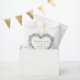 Mistura coroa coraçao desenhando cinzas escuras e obrigado casamento no inverno branco você favorece bolsas. Adicione seu próprio nome de casal e data de casamento em carvão muito escuro em branco nítido. Outras cores e itens de casamento correspondentes estão disponíveis. © Original erro de desenho e design por Sarah Trett para www.mylittleedenweddings.com no Zazzle.