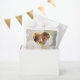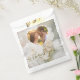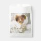 Este design elegante de bolsa de lembrança de casamento apresenta uma foto sonhadora de rosa branca da Destei desbotada ao fundo, com um modelo de foto em forma de coração para mostrar o casal. Um lindo "obrigado" em letra cursiva flui acima de uma área de texto personalizável para nomes, data ou sua própria mensagem. Um toque romântico e pessoal para os convidados do casamento levarem para casa.