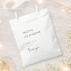 Estas elegantes bolsas de casamento preto e branco são simples e minimalistas, mas muito na moda devido ao moderno guião manuscrito que diz "obrigado tu", e ao layout limpo.