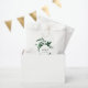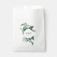 Bolsas de noiva de inverno dizem obrigado para os convidados no estilo elegante. As bolsas apresentam uma coroa de folhagem de cor d'água de inverno em tons frescos de verde caçador, moldando suas iniciais ou monograma e a data do casamento em caracteres clássicos. Projetado para coordenar com nosso casamento da Floresta Selvagem e nossa coleção de eventos especiais.