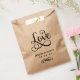 As bolsas de casamento apresentam um design de roteiro decorativo de cor preta com amor com monograma personalizado que inclui os nomes da noiva e do noivo e a data do casamento.