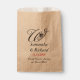 As bolsas de casamento monogramas são exclusivas com um elegante monograma floral de espiral em preto. O monograma decorativo está disponível em todas as letras - A a Z. Um obrigado personalizado que você envia e os nomes de casais fazem deste favorito de casamento um presente memorável de retorno.