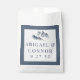 Elementos: Motivo de montanha enevoada em aquarela com árvores e neve. Fontes serifadas elegantes compensadas por uma borda simples, porém refinada. Cores: azul, branco, cinza, ardósia, azul poeirento, branco neve, azul real, Temas: simples, elegante, moderno, rústico, casamento ao ar livre, casamento na montanha, junte-se a nós nas montanhas, único, campo, après-ski, lodge de montanha. Coleção: Coleção de Casamento com Borda Elegante Azul Cinza Branco Montanha Enevoada. Tipo de Produto: Sacola de Lembrança