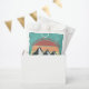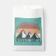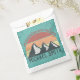 As montanhas de pastéis de safra chamam de design personalizável monograma. Desenho de uma montanha de neve com linhas de cor pastel em amarelo, laranja e vermelho representando o céu do pôr do sol. Acima do círculo céu está um ditado que montanhas estão chamando e debaixo das montanhas há um monograma onde você pode adicionar seu nome. Perfeito para os entusiastas da natureza e caminhada.