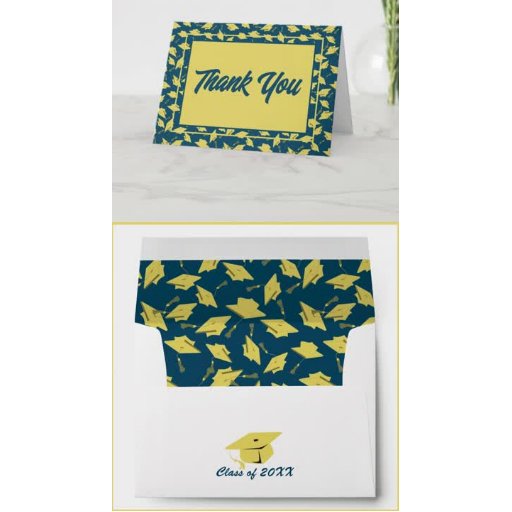 As bolsas simples, mas na moda, apresentam uma vinha de folha de ouro à volta da borda e um texto de ouro moderno sobre um fundo azul marinho com boné de formatura de ouro e o ano de graduação. Uma elegante procura por um segundo grau ou formando universitário.