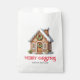 Dê o melhor de si para uma casa divertida de pão de gengibre decorando o Natal, festa de férias. Uma casa decorada de pão de gengibre apresenta nesta bolsa de favores com sua mensagem personalizada abaixo. É uma bolsa de favor perfeita para uma festa de decoração, troca de biscoitos, festa de Natal, festa de Natal ou festa de aniversário de Natal. Disponível com produtos correspondentes.