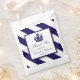 Estes sacos de presentes são perfeitos para qualquer casal planejando um casamento romântico pelo mar. O design apresenta um movimento branco de navio azul marinho num marinho náutico e fundo listrado branco. O design simples pode ser personalizado para se adequar ao seu evento especial e será o saco de presentes/favores perfeito para qualquer festa temática de praia náutica, incluindo chás de panela, noivados, chás de casamento, festas de aniversário e muito, muito mais.