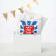 Saltando e saltando através de limites de obstáculos como um campeão de parkour, esta criança ninja está tendo uma festa de aniversário com escudo guerreiro e estrelas e listras no tema vermelho branco e azul.