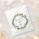 Com folhas de eucalipto verdejante, estas bolsas de lembrança de casamento botânico chiques podem ser personalizadas com sua mensagem especial e detalhes da celebração do casamento. Desenhado por Thisisnotme©
