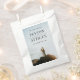 Mande seus convidados de casamento para casa com um doce brinde nesta bolsa de favores com tipografia clássica e limpa sobre uma foto impressionante e noivado atmosférico.