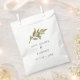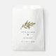 Simples casamento apressado favorece bolsas. Este design apresenta um ramo de oliveira a aquarelas com azeitonas pretas e folhas verdes. Personalize com seus nomes e data de casamento na fonte da cinza escura.