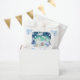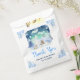 This cute and whimsical watercolor baby shower favor bag features a watercolor winter wonderland scene with adorable arctic animals, such as a polar bear, penguin, cat, owl, seal and a moose. In the background are the northern lights, snow capped mountains and trees. The text combines handwritten script and sans serif fonts for a stylish and modern look. Falling snowflakes and beautiful blue floral arrangements give a winter feel. This is perfect for winter and Christmas baby showers.
