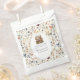 Este doce obrigado floral que você - saco de favores é projetado para seu evento de chá de fraldas, com o tema 'Novo capítulo'. O cartão apresenta ilustrações de uma pilha de aquarelas de livros decorados florais e o fundo é primavera de flores silvestres em cores suaves. Tipo de letra clássico do estilo inglês para uma sensação de livros de ilustração de crianças antigas.