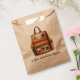 Tema do chá de fraldas com ilustração de uma mochila marrom adornada com natureza selvagem, acampamento e caminhada de manchas temáticas com garrafas de bebês nos bolsos laterais.