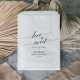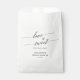 Esse elegante amor pela caligrafia negra é um doce favor, bolsas são perfeitas para um simples chá de casamento. A design neutra apresenta uma bolsa de favores minimalista decorada com tipografia romântica e caprichosa. Personalize as bolsas de tratamento com uma mensagem curta, o nome do convidado de honra, evento e a data. Essas bolsas de tratamento podem ser usadas para uma recepção de casamento, chá de panela ou qualquer evento ou festa.