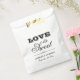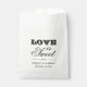 Um saco de lembrança de casamento impressionante com "O Amor é Doce" em tipografia mista moderna e ousada, com contraste marcante entre letras em bloco e script. Os nomes do casal e a data do casamento são exibidos abaixo em script elegante. Todo o texto é totalmente personalizável. O design preto no branco de alto impacto funciona lindamente para barras de doces, mesas de sobremesas, estações de cookies ou despedidas de doces no seu reception.