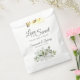 Estas belas bolsas são perfeitas para uma mesa na sua recepção de casamento. Eles apresentam uma adorável design boho chic com um aglomerado de folhas de cor d'água pintadas manualmente, de eucalipto e verde em tons de menta, musgo e sábio verde. O texto elegante diz: "O amor é doce, por favor, dê uma olhada" com espaço para os nomes do casal e da data do casamento.