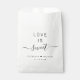 Bolsas de favores brancos chic para seus convidados de casamento com "Love Is Sweet" em uma simples tipografia moderna e um roteiro elegante com sucos, seus primeiros nomes se uniram por um coração e sua data de casamento.