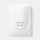 Modern Wedding Favor Bag apresentando um design simples e na moda com "Love is Sweet" em uma tipografia elegante com supressões junto com seus nomes e data de casamento. Todos os elementos de design estão em preto-e-branco e podem ser alterados na ferramenta de edição de design. Essas Bolsas de Casamento Favorito ao estilo minimalista são excelentes para qualquer estilo de casamento, casual ou formal.