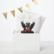 O Coração Rachado: Um Epo Gótico. Um coração gótico grande e rachado perfurado por uma seta afiada se senta majesticamente no centro da ilustração. As mãos esqueletais segurando-a parecem vir das sombras do passado, dando à imagem um apelo estranho. As duas asas pretas, que se espalham elegantemente, parecem oferecer proteção e ameaça, reforçando a aura mística da design. O fundo brilha num vermelho brilhante que se parece com o sangue de um coração pulsante, refletindo a intensidade dos sentimentos.