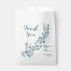 Agradeça aos convidados do seu casamento com um saco de favores de eucalipto aquarela. Edite o tipo e a cor da fonte para o que você quiser ao fazer o pedido.