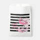 O design apresenta um flamingo com padrões paisley caleidoscópicos em tons de rosa sobre fundo de listras brancas e pretas. Esta design de aves tropicais com texto personalizado faz bolsas modernas e únicas a favor.