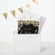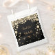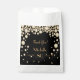 Uma bolsa de favores elegante e glamourosa de 80. Fundo preto e ouro de diamantes falsos coloridos. Com o texto: Obrigado! Modelos de nome, data de nascimento e data de aniversário e número de idade. Ouros.