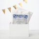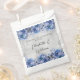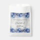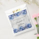 Um fundo na moda faux prateado com aspecto decorado com faíscas e flores azuis. Com o texto: Casamento e Obrigado por comemorar conosco. Personalize e adicione seus nomes.