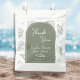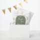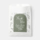 Essas Sacolas de Favor com Desenhos de Conchas Marinhas em Verde Salvia "Obrigado" exibem um fundo sereno em verde salvia decorado com desenhos caprichosos de conchas marinhas, estrelas-do-mar, corações e brilhos para um visual costeiro suave e elegante. Na frente, um arco em verde salvia delineado com um fino arco interno branco emoldura sua mensagem personalizada. Dentro, "Obrigado" está no topo, seguido por texto editável para o nome da noiva, "Chá de Noiva", uma ilustração de concha marinha doce e a data do evento. Ideais para conter lembranças de chá de noiva, guloseimas, pequenos presentes ou brindes de boas-vindas. Todas as cores e textos são personalizáveis para se adequar ao seu tema.