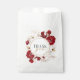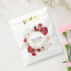 Um saco de favores maravilhosamente projetado com rosas vermelhas rubis e flores brancas suaves, perfeito para apresentar seu obrigado com elegância e encanto.
