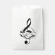 Um saco de favores para os músicos inclinados, com uma clave de triplo e um padrão circular de repetição de notas musicais. O texto diz "obrigado você".