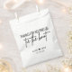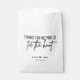 Um saco de favores de casamento moderno e chic para oferecer aos seus convidados. Ele apresenta uma simples letra que diz "Obrigados para nos ajudar", seguida de uma elegante letra caligráfica que diz "amarre o nó". Personalize com seus nomes e data de casamento.