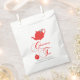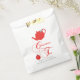 Aprecie seus convidados com esta elegante bolsa de favores da festa de Natal para expressar suas obrigados pela sua participação na celebração do seu chá de férias. O texto de agradecimentos pode ser personalizado usando o modelo fornecido. Bule vermelho com arco prateado saindo de uma bonito bola de Natal sobre uma fonte graciosa. Tudo coberto de um cadáver vermelho. Complemente suas decorações e suprimentos de chá de Natal com produtos de design correspondentes disponíveis em minha loja no site Zazzle. ©AnuraDesignStudio Todos os Direitos Reservados