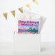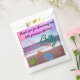 Você está planejando uma chá de fraldas para alguém esperando uma menina? Essa encantadora design mostra um tema encantador do oceano, com uma variedade de criaturas submarinas, com a data do chá mostrada de forma destacada. No topo, há um espaço dedicado para a etiqueta "Chá de fraldas" da futura mãe. O design captura lindamente a essência do oceano, incluindo elementos deliciosos como um barro azul e rosa, uma tartaruga verde, um peixe-estrela laranja, e um caranguejo-laranja-avermelhado. Do lado esquerdo, as palavras "É um" são escritas a rosa, enquanto "chá de fraldas" se segue, com "bebê" a verde e "chá" a vermelho. Uma baleia azul brincalhona natação alegremente entre as letras "a" e "baby". Para completar o design, o fundo apresenta uma matiz cor-de-rosa suave, complementada por uma borda púrpura azulada no lado direito, acrescentando ao encanto geral deste tema adorável. Por cima da bolsa de favores está uma obrigado que você usa as palavras "obrigado você por chutar nossa princesa com amor!