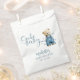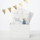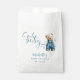 Set the scene for a joyful celebration with these blue jean baby themed baby shower paper favor bags. Featuring an adorable bear in denim dungarees, and playful blue stars scattered across a modern baby shower template.