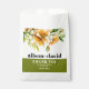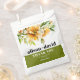 This elegant fall wedding favor bag showcases a beautiful rhododendron branch adorned with delicate orange yellow flowers and greenery at the upper part. The couple's names are prominently displayed in bold typography, adding a personal touch to the design. A heartfelt message of 'Thank You' is also included, expressing gratitude to the guests. Completing the look, a stylish olive green band gracefully adorns the bottom of the bag, adding a touch of sophistication to any wedding celebration.