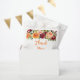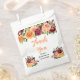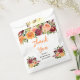 Este lindo e elegante saco de lembrança de chá de noiva apresenta flores vermelhas borgonha e laranja em aquarela com folhagens. O texto combina fontes manuscritas e serifadas para um visual moderno e sofisticado. É perfeito para um chá de noiva rústico de outono.