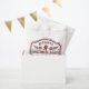 Esta bolsa de favores em estilo fazenda apresenta um design de estilo de logotipo que diz "Padaria de Biscoito de Gengibre da Sra. Claus". As cores incluem vermelho e preto.