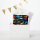 Um bonitinho dinossauros coloridos com padrão de aquarela design com fundo preto. Os dinossauros incluem Tyrannosaurus Rex (T Rex), Brontosaurus, Stegosaurus, Tricerátops, Pterodactyl e muito mais. Design ideal para amantes do período Jurássico, dinossauros, animais e história. Este adorável padrão de dinossauros é perfeito para um presente de aniversário, decoração infantil, arte infantil, decoração doméstica, presente de Natal ou presente para qualquer outra ocasião especial.